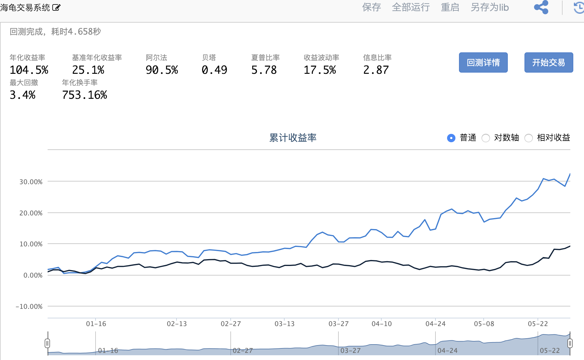 信号一旦产生,关于执行策略考虑就变得重要起来。我们采用算法交易,一旦满足止损或离市的条件,则采用市价单在最短时间内离市。
